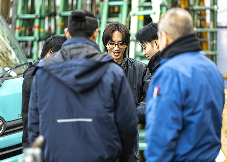 出社後、点呼をして現場へ向かいます。